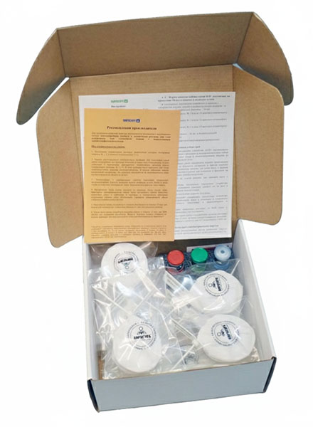 - Набор укомплектован тремя видами стерильных элюентов (элюирующие растворы № 1.2.3.) (в соответствии с МУК 4.2.4063-24; МУК 4.2.2029-05).